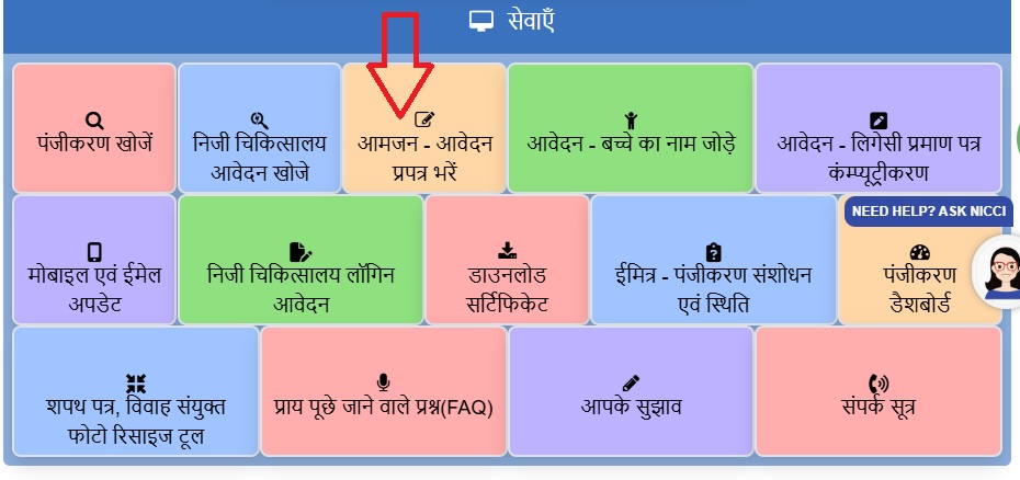 - यह वेबसाइट खोलने के बाद आपको नीचे स्क्रीन पर दिखाया गया पेज खुल जाएगा जिसमें आपको आमजन – आवेदन प्रपत्र भरे वाले ऑप्शन पर क्लिक करना है